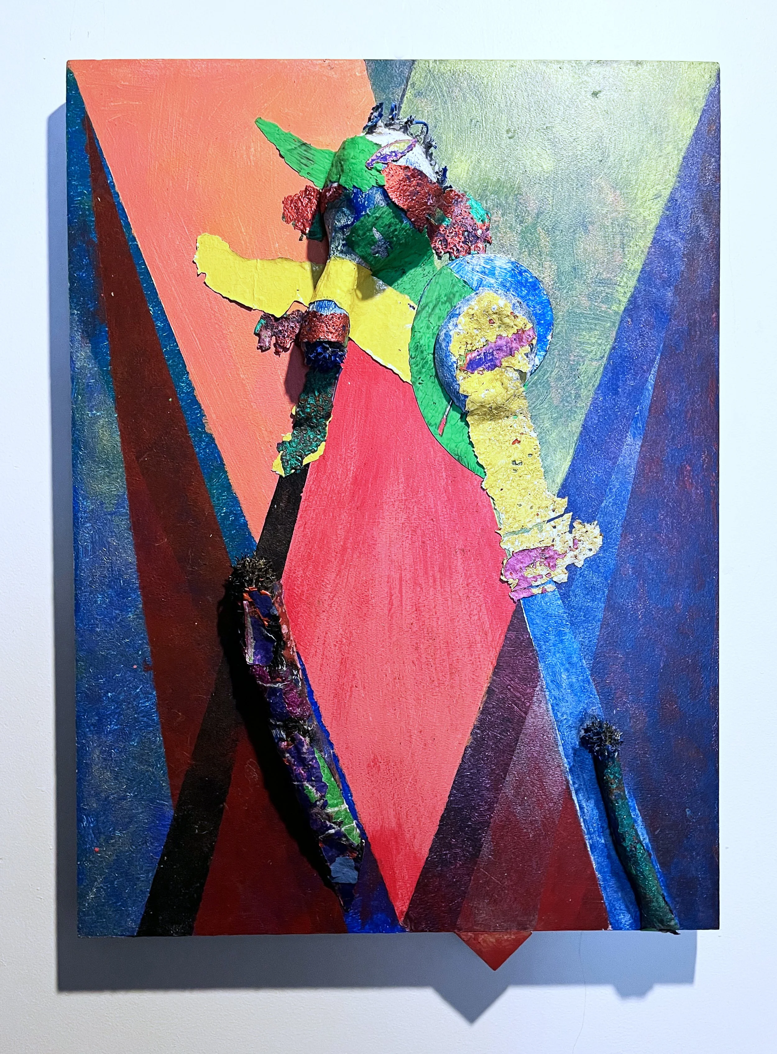 Along the Way 2023, mixed media acrylic painting on panel 20”x16”x 4”